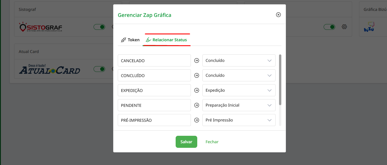 Se você terceiriza com a Zap Grafica poderá realizar a configuração de alteraçao de status de forma automática.