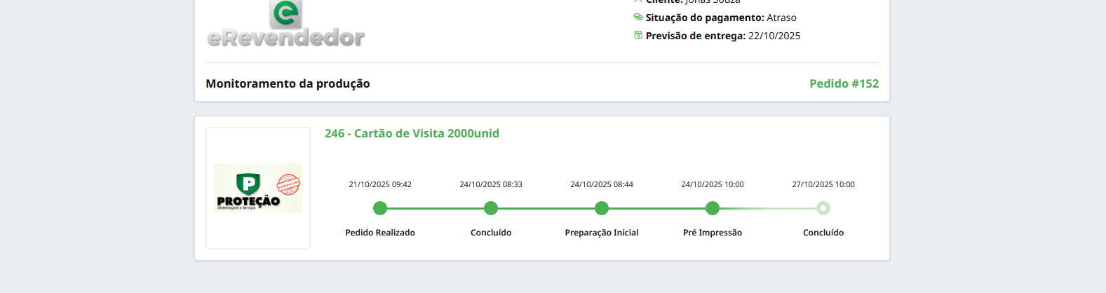 Após isso, no intervalo de cada hora, será consultado o status, e caso tenha tido alguma alteração na revenda, iremos atualizar automaticamente em seu pedido. E seu cliente poderá acompanhar em tempo real.